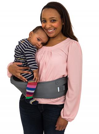 Le siège à porter sur les hanches est une autre solution. Ce système avec siège intégré permet de porter l'enfant dans une position naturelle. Le poids de l'enfant est réparti de façon égale sur le bassin pour que les bras, les épaules et le dos de la personne qui garde de l'enfant, ne soient pas chargés inutilement. Le siège pour hanche permet de porter les enfants de six mois à trois ans.