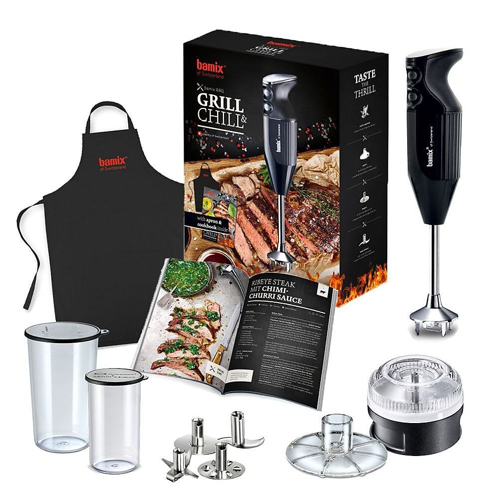 bamix® brengt een BBQ set uit! Geweldig nieuws voor alle BBQ junkies, stoere mannen en vrouwen die deze zomer graag uitpakken met hot & smokin’ dishes. Zeg nooit zomaar staafmixer tegen een bamix®. Deze compacte keukenmachine doet zoveel meer dan mixen. Die blender en foodprocessor hoef je niet meer boven te halen. De bamix® vervangt gewoon beide. Hij is niet alleen plaatsbesparend, maar bovendien razendsnel schoon (gewoon even onder de kraan houden), zuinig én ongelofelijk krachtig. De lekkerste chimichurri saus voor bij die sappige steak Belgisch Witblauw? Die vind je simpelweg in het bijgeleverde kookboek. Een stijlvolle zwarte kookschort beschermt je favoriete zomeroutfit tegen spatten en vegen.