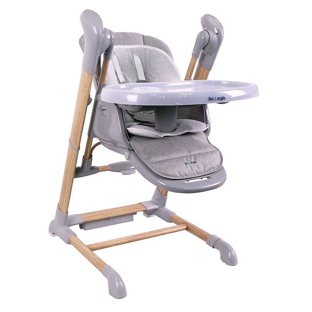 Deze mooie schommel -en eetstoel maakte grote furore op de beurzen van Keulen en Parijs! Zowel de hoogte van de stoel, als de positie van de rugleuning, tablet en voetensteun zijn eenvoudig en in meerdere standen verstelbaar. Het zitje is bekleed met zachte, luxueuze stoffen. Wat echt speciaal is, is dat dit product niet enkel als eetstoel, maar ook als schommel gebruikt kan worden. In de bewegingsdetectiestand, begint de stoel automatisch te schommelen wanneer je baby onrustig wordt. Bovendien kunnen de muziek, schommelsnelheid, het volume, etc. ook bestuurd worden via een app op je mobiele telefoon én kan je ook je eigen mp3’s afspelen. Er wordt een USB-adapter meegeleverd, waardoor je dit product ook op netstroom kan gebruiken.