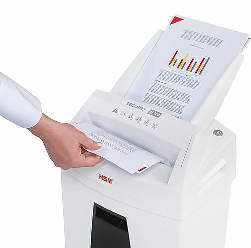 De productreeks HSM SECURIO AF brengt functionaliteit en bedieningsgemak samen met een tijdloos design. De AF-serie met automatische papierinvoer vernietigt stapels tot wel 500 vellen comfortabel en tijdbesparend. De jongste aanwinst is de HSM SECURIO AF100. Met het aantrekkelijke productdesign in de trendy kleur wit wordt het nieuwe model met compacte afmetingen en een opvangvolume van 25 liter het instapmodel van de autofeed-datavernietigers.