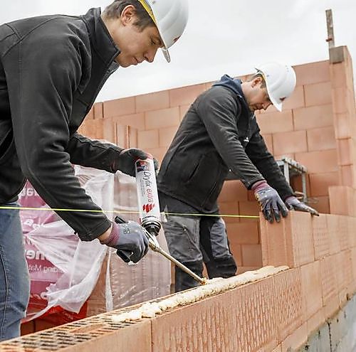 Dit revolutionaire bouwsysteem is ontwikkeld met de volledige focus op rendement. Door middel van het gebruik van een extra spuitbus, kan het voortaan nog efficiënter, omdat het vullen van emmers, kuipen en mortelbakken nu tot het verleden behoort. Dankzij de snellere uitharding kan onmiddellijk tot verdiepingshoogte gewerkt worden. De dag na het aanbrengen, is de muur meteen belastbaar en kunnen de vloerplaten geplaatst worden. Bij mortel en lijmmortel moet langer gewacht worden. Er zijn geen extra benodigdheden en hulpmaterialen nodig: alleen een spuitbus en PLS lijmstenen. De grotere weersonafhankelijkheid bij het bouwen is een extra troef. Porotherm Dryfix kan immers aangebracht worden bij een omgevingstemperatuur van -5 °C tot 35 °C.