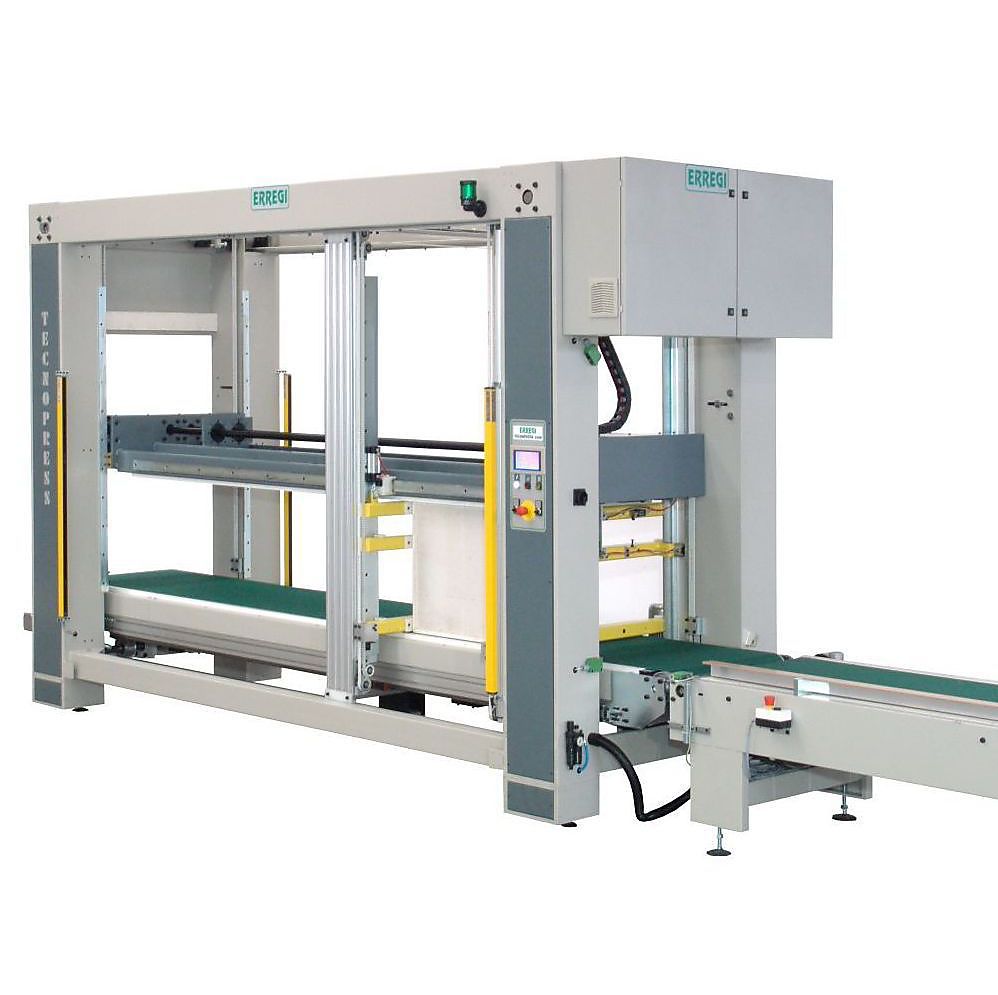De VR2 corpuspers in doorloop van Erregi biedt een grote meerwaarde voor veel interieurbedrijven. Wanneer de corpus is samengesteld op de voormontagetafel, wordt de cyclus automatisch gestart en gaat de corpus de pers in. De leesinrichting controleert automatisch alle afmetingen en stuurt deze door naar de PLC. Deze stuurt op zijn beurt de drukbalken en de transportband aan zodat er steeds een correcte positionering en correcte druk gegarandeerd kan worden. De geperste corpus wordt automatisch uit de machine getransporteerd wanneer de werkcyclus ten einde is. Erregi kan corpuspersen ontwikkelen volgens de gewenste afmetingen van de klant.