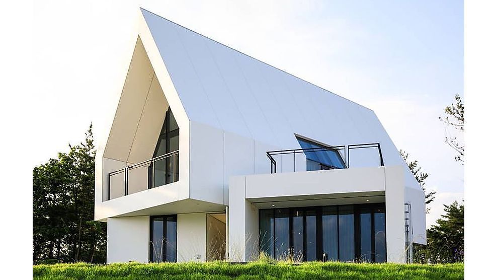 De Frans-Koreaanse architect Woojin Lim heeft zijn droom om in zijn thuisland, Zuid-Korea, een huis te bouwen in symbiose met de omgeving en natuur, verwezenlijkt. Hij koos ervoor de gevel en het dak te bedekken met HI-MACS® Alpine White platen. Het eindresultaat is een zuiver wit huis dat verandert van uiterlijk in functie van de omgeving. Het vormt een levend tableau en weerspiegelt de variërende tinten van het licht, de seizoenen, de kleur van de hemel en de omgeving.