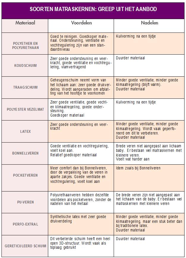 Materialen moeten veerkrachtig, ademend en antiallergisch zijn